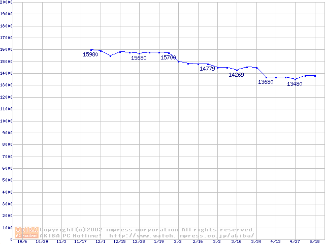 | [↓次グラフ]: | Travelstar 60GH (12.5mm,5400rpm,UltraATA/100,15GB/Platter,2MB,流体軸受)の最安値推移 |