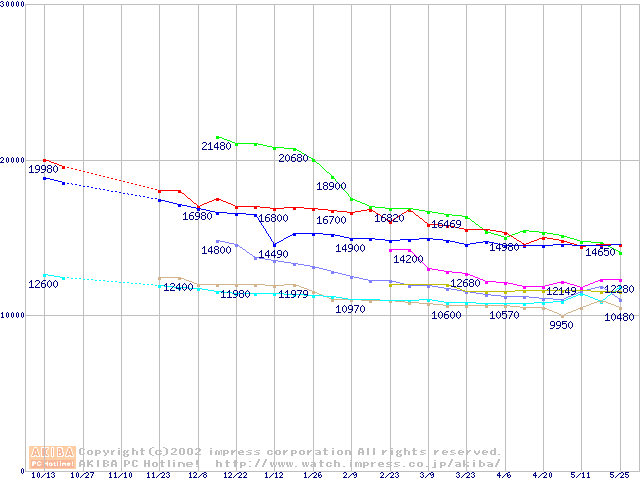 | [↓次グラフ]: | 2.5インチHDD主要製品(最安値1万5千円~2万円未満)の最安値推移 |