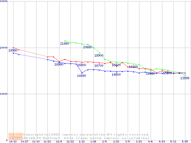 | [↑前グラフ]: | 2.5インチHDD 20GB~30GB未満(9.5mm厚)の最安値推移 |