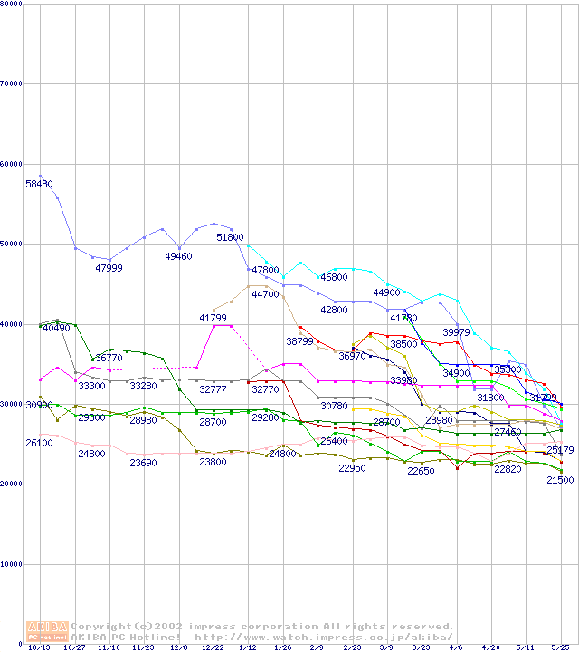CPU主要製品(最安値2万円~3万円未満)の最安値推移