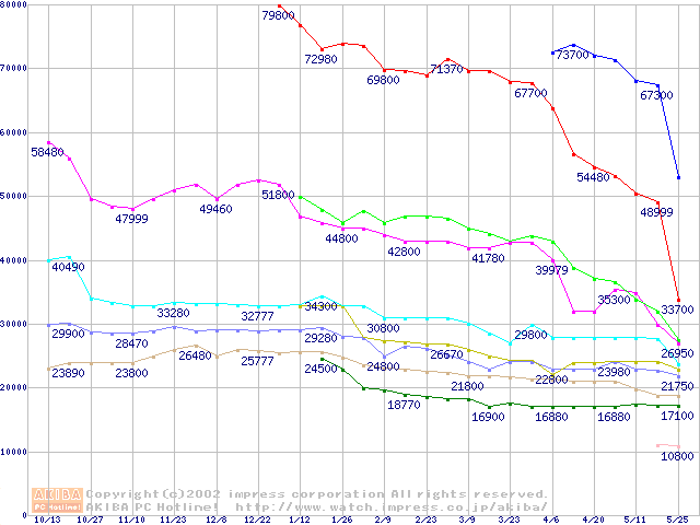 Socket 370・FSB 133MHzの最安値推移