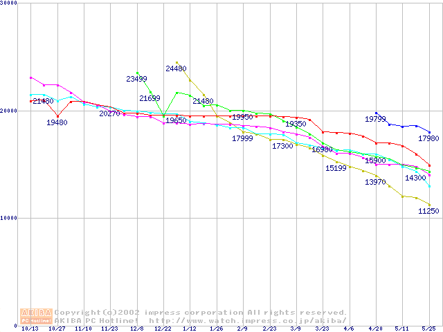| [↓次グラフ]: | HDD 100GB以上(7200rpmクラス)の最安値推移 |