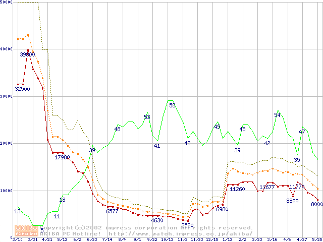 PC133 SDRAM DIMM CasLatency=3の最安値推移