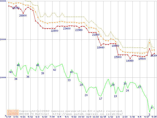 Socket 370・FSB 133MHzの最安値推移