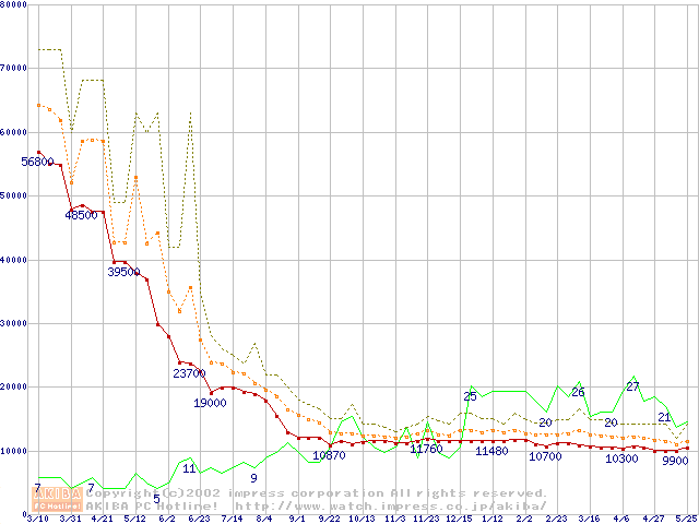 PC800 DRDRAM 256MB ECC対応の価格推移