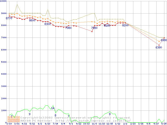 MPG3xxxAT (5400rpm,UltraATA/100)の最安値推移