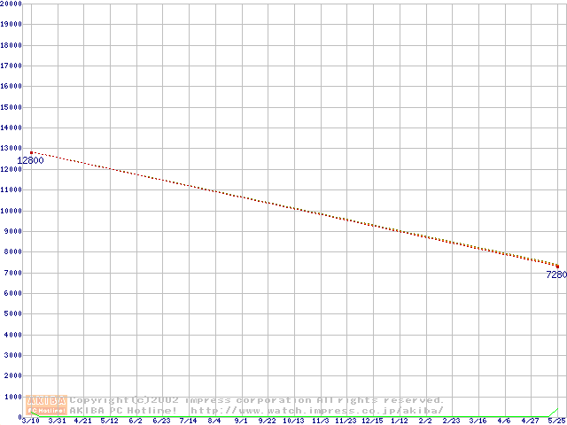 Socket 370 (FC-PGA,FSB 100MHz,L2 128KB)の最安値推移