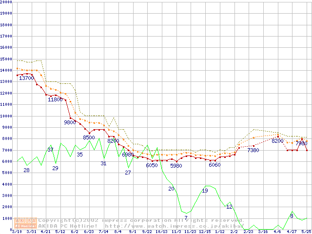 Celeron 800MHz FC-PGA リテールパッケージの価格推移