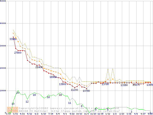 Athlon 1.3GHz(FSB200) (Thunderbird) バルクの価格推移