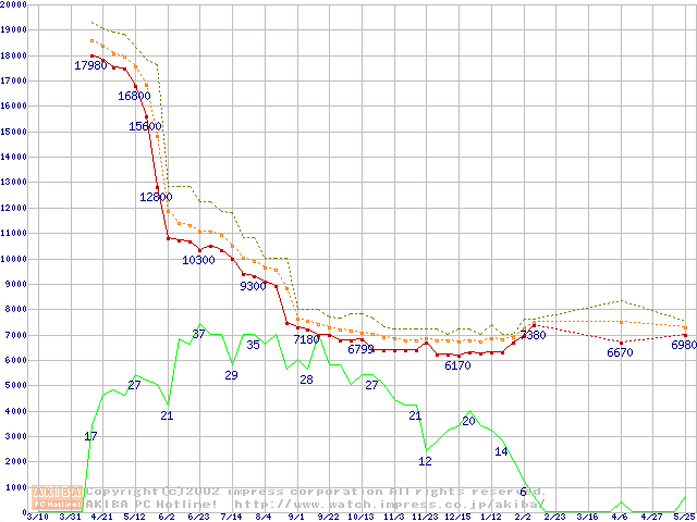 Celeron 850MHz FC-PGA リテールパッケージの価格推移