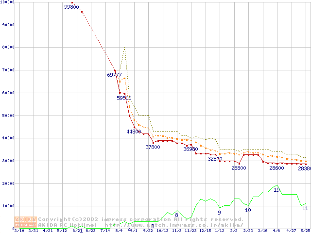 PC800-45 DRDRAM RIMMの最安値推移