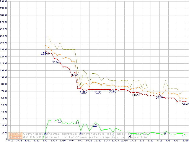 Socket A (Spitfire,PGA,FSB 200MHz,L2 64KB)の最安値推移