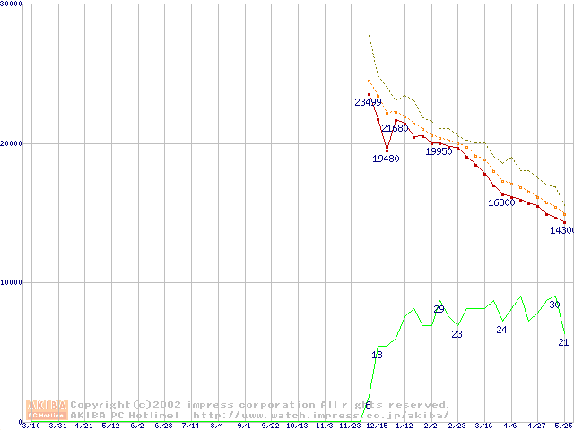 DiamondMax Plus D740X (7200rpm,UltraATA/133,40GB/Platter,流体軸受)の最安値推移