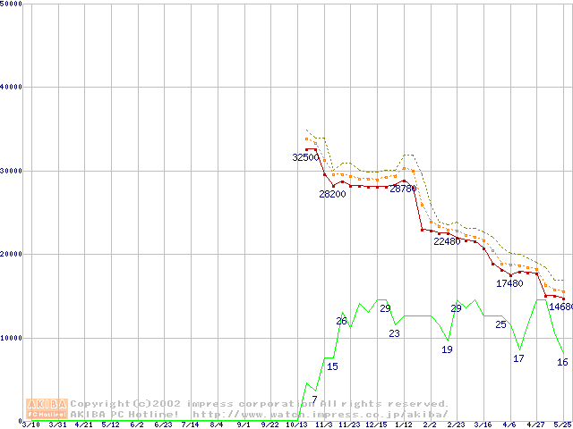 Athlon XP 1800+ (1.53GHz) リテールパッケージの価格推移