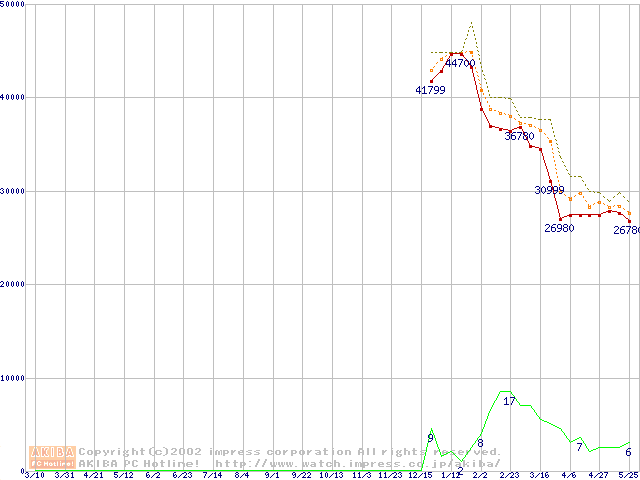 Socket A (Palomino,OPGA,FSB 266MHz,L2 256KB)の最安値推移