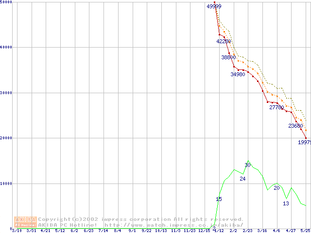 Socket A (Palomino,OPGA,FSB 266MHz,L2 256KB)の最安値推移