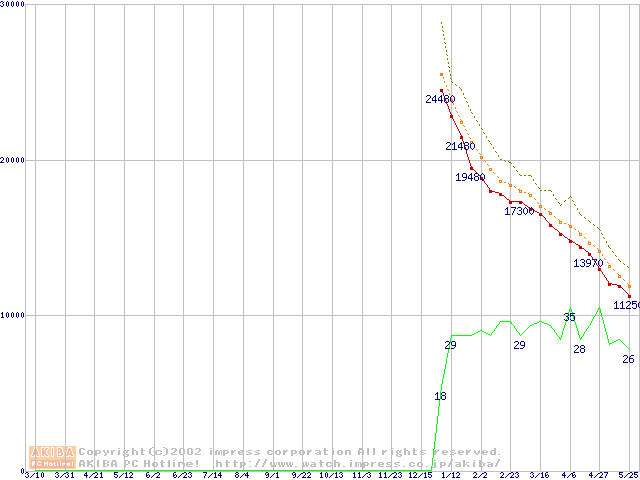 Deskstar 120GXP (7200rpm,UltraATA/100 2MB)の最安値推移