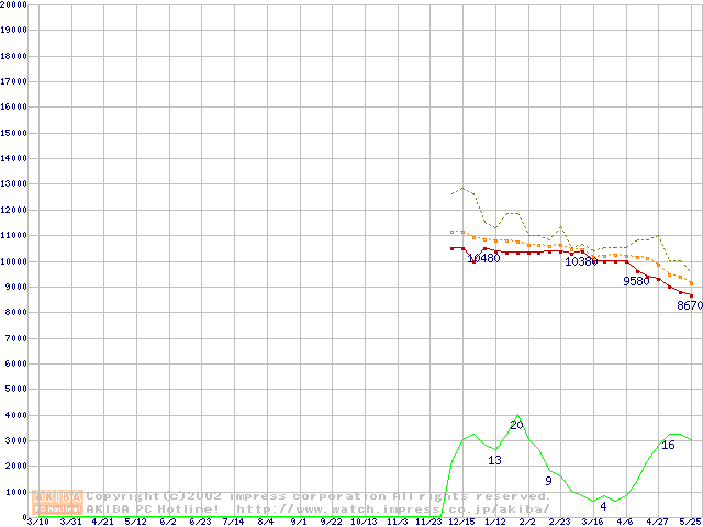 DiamondMax D540X (5400rpm,UltraATA/100,40GB/Platter,流体軸受)の最安値推移