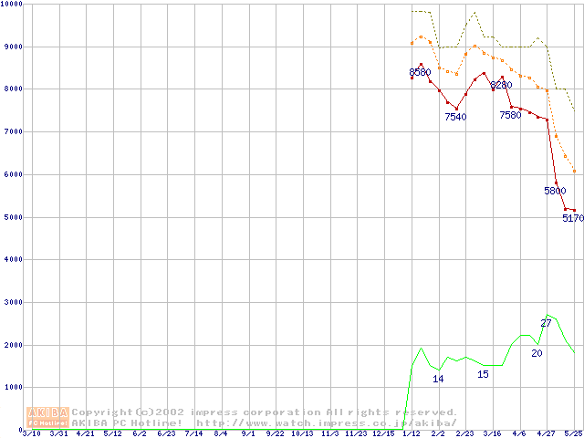 メモリ主要製品の最安値推移