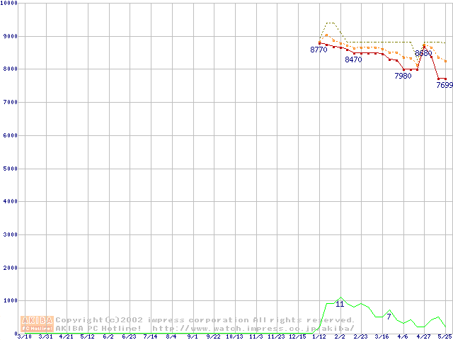 Socket 370 (PGA,FSB 133MHz,L2 64KB)の最安値推移