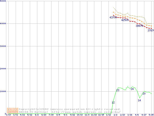 Socket 370 (FC-PGA2,FSB 133MHz,L2 512KB)の最安値推移