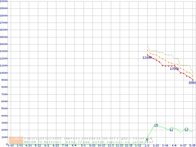 Socket A (Morgan,PGA,FSB 200MHz,L2 64KB)の最安値推移
