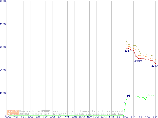 Athlon MP 1800+ (1.53GHz) リテールパッケージの価格推移