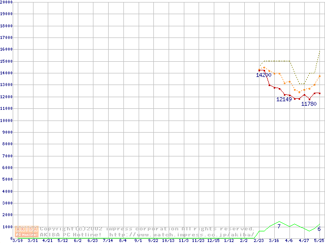 MHRシリーズ (9.5mm,4200rpm,UltraATA/100,2MB,20GB/プラッタ,流体軸受)の最安値推移