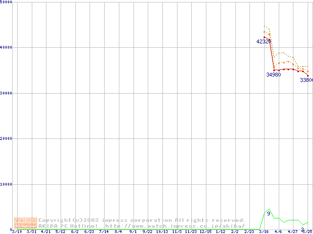Socket A (Palomino,OPGA,FSB 266MHz,L2 256KB)の最安値推移