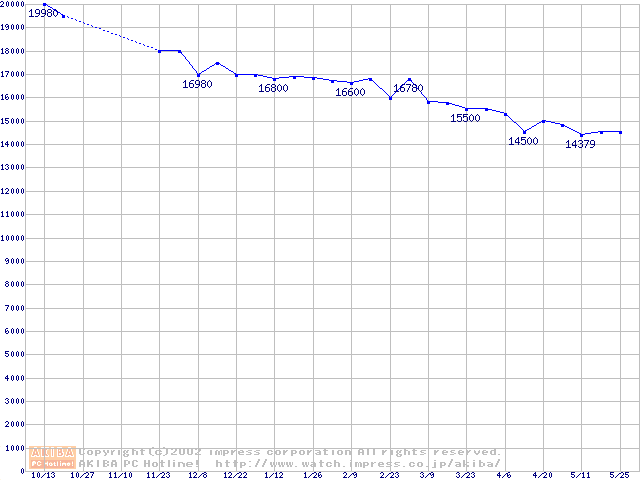| [↓次グラフ]: | Travelstar 15GN (9.5mm,4200rpm,UltraATA/100,512KB,流体軸受)の最安値推移 |