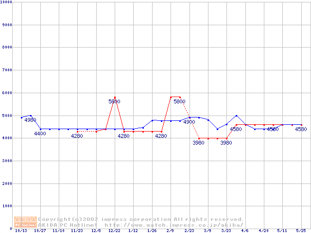| [↑前グラフ]: | Socket 370 (FC-PGA,FSB 66MHz,L2 128KB)の最安値推移 |