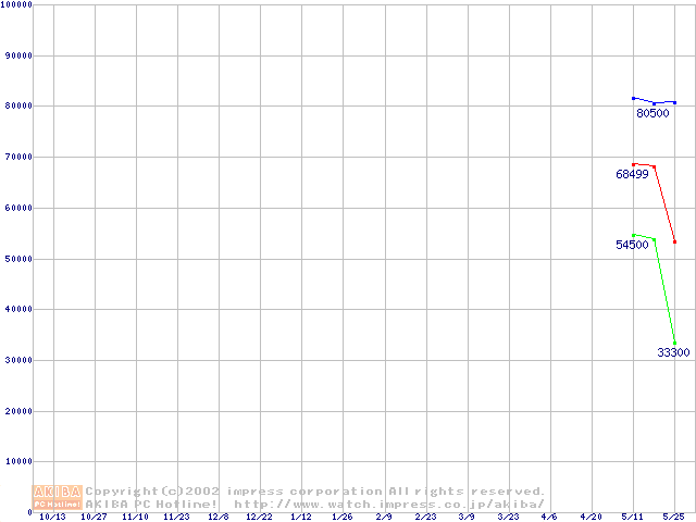 | [↑前グラフ]: | PC800 DRDRAM RIMM ECC対応の最安値推移 |