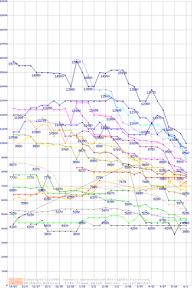 CPU主要製品の最安値推移