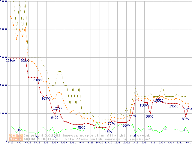PC100 SDRAM DIMM CasLatency=2の最安値推移