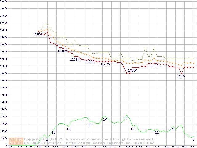 MPG3xxxAH-E (7200rpm,UltraATA/100)の最安値推移