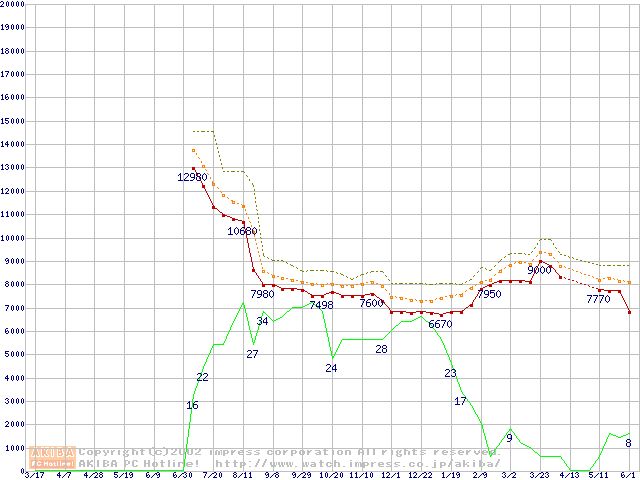 Celeron 900MHz FC-PGA リテールパッケージの価格推移