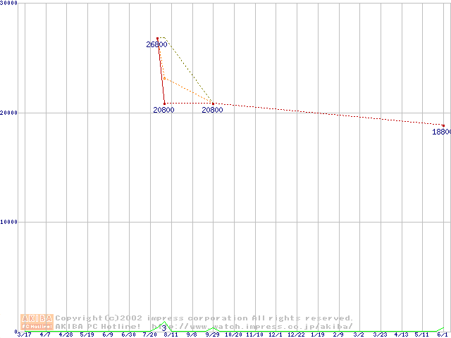 Socket 370 (FC-PGA,FSB 100MHz,L2 256KB)の最安値推移