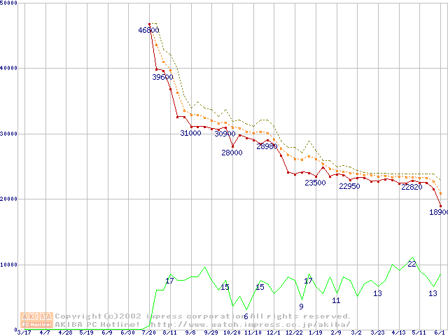 Pentium III-S 1.13GHz FC-PGA2 リテールパッケージの価格推移