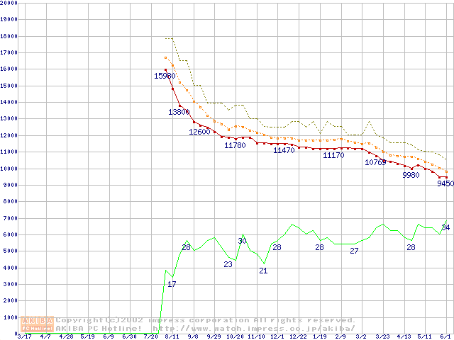 HDD主要製品の最安値推移