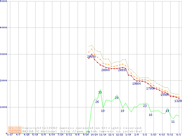 Socket A (Palomino,OPGA,FSB 266MHz,L2 256KB)の最安値推移