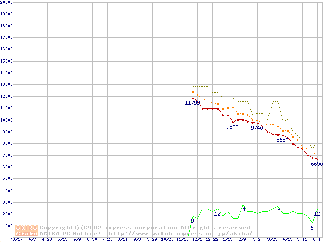 Socket A (Morgan,PGA,FSB 200MHz,L2 64KB)の最安値推移