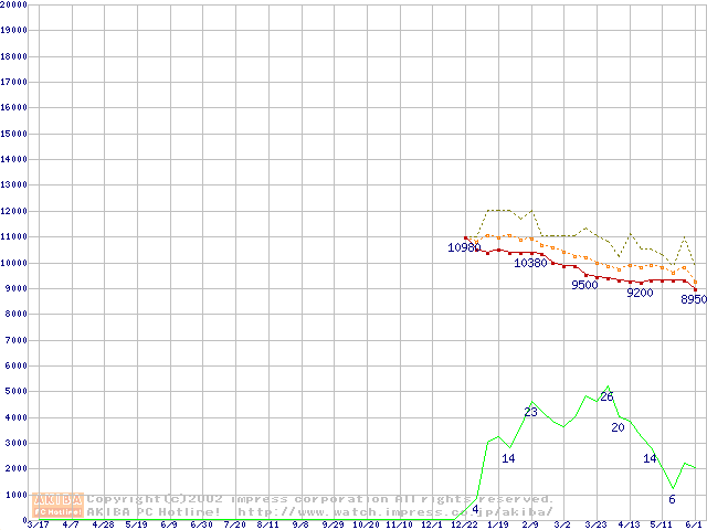 DiamondMax D540X (5400rpm,UltraATA/100,40GB/Platter,流体軸受)の最安値推移