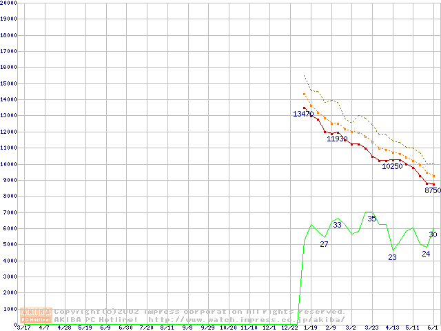 Deskstar 120GXP (7200rpm,UltraATA/100 2MB)の最安値推移