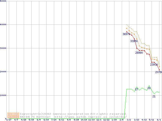 Athlon XP 2000+ (1.67GHz) リテールパッケージの価格推移