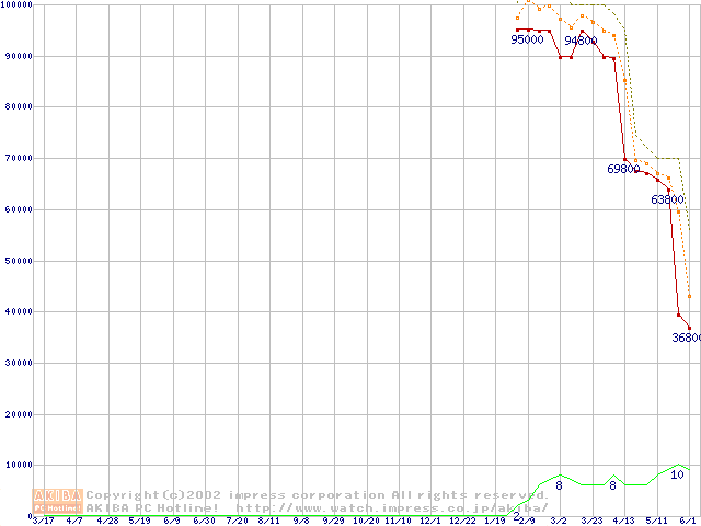Socket 603 (micro-PGA,L2 512KB,Hyper-Threading,Prestonia)の最安値推移