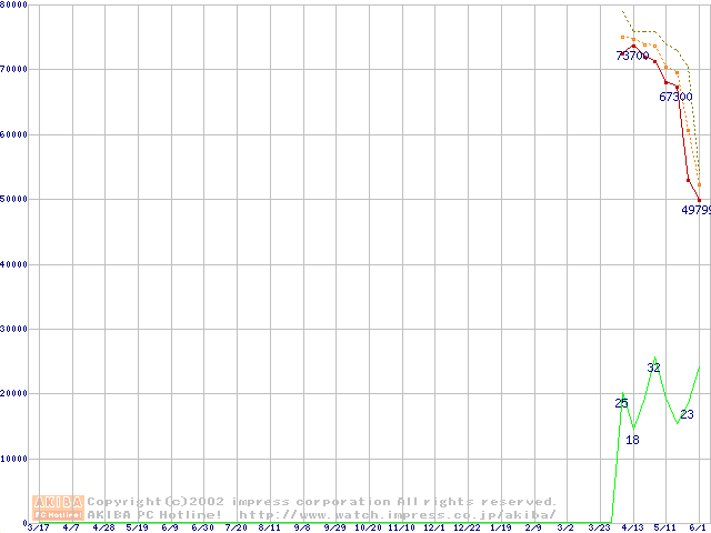 Socket 478 (micro-PGA,FSB 400MHz,L2 512KB,Northwood)の最安値推移