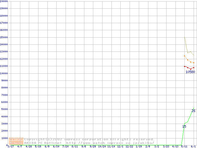 メモリ主要製品(最安値1万円以上)の最安値推移
