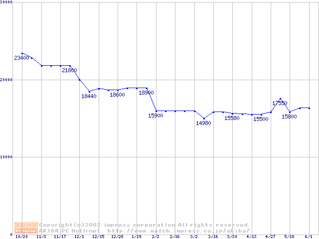 | [↑前グラフ]: | Socket 370 (FC-PGA2,FSB 133MHz,L2 256KB)の最安値推移 |