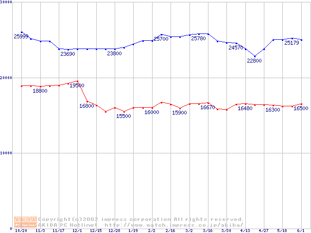 | [↑前グラフ]: | Slot 1 (SECC2,FSB 133MHz,L2 256KB)の最安値推移 |