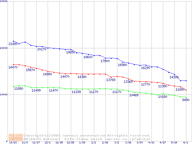 | [↑前グラフ]: | 541DX (5400rpm,UltraATA/100)の最安値推移 |